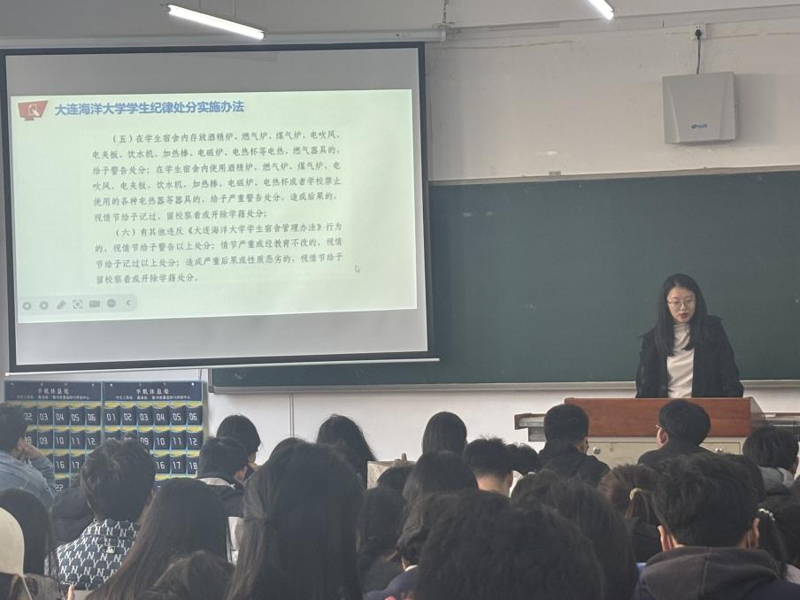 两位辅导员结合研究生日常管理规定,详细解读了学校关于宿舍的安全管理规定、请假与考勤规定、卫生管理规定以及反诈宣传等相关内容,结合实际案例,引导学生能够树立良好的生活习惯和安全防范意识。