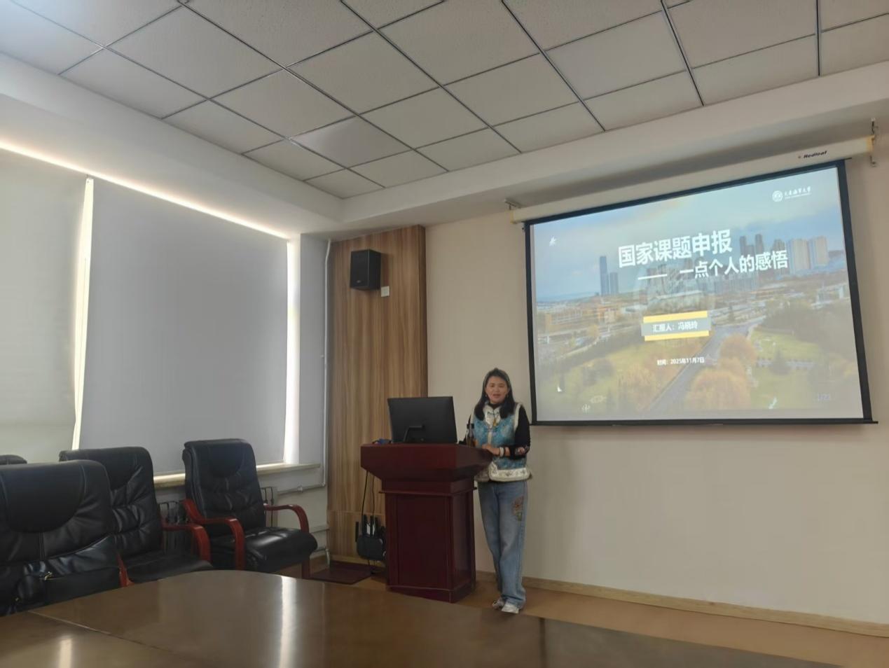 11月7日下午,我院在黑石礁校区北院综合楼S520室举办了国家社科基金项目申报指导专题讲座。讲座特邀大连海事大学航运经济与管理学院冯晓玲教授担任主讲嘉宾。院长王黎黎、党委书记高雪梅及各专业教师参加。讲座由副院长曲亚囡主持。