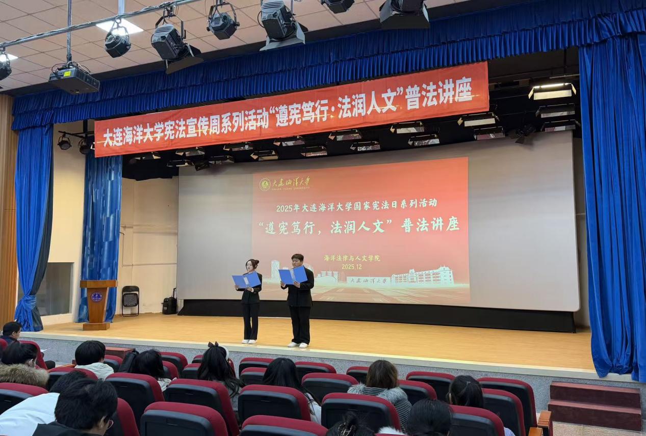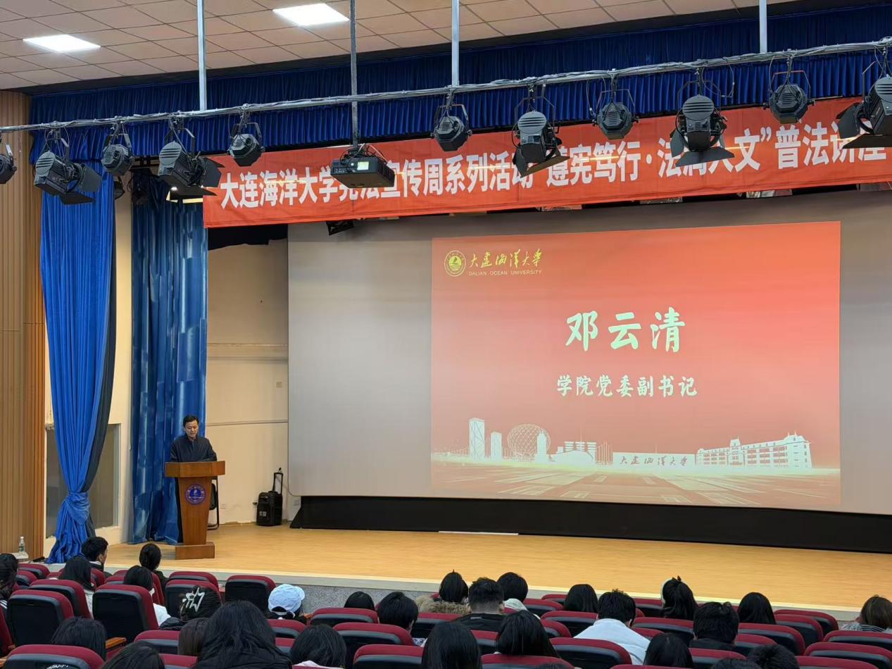 12月5日,我院在大黑石校区第二阶梯教室举办“宪法宣传周”系列活动之——“遵宪笃行,法润人文”普法讲座暨法律知识竞赛,我院党委副书记邓云清,辅导员邱愉珊、张恒毅及200余名本科生参加。