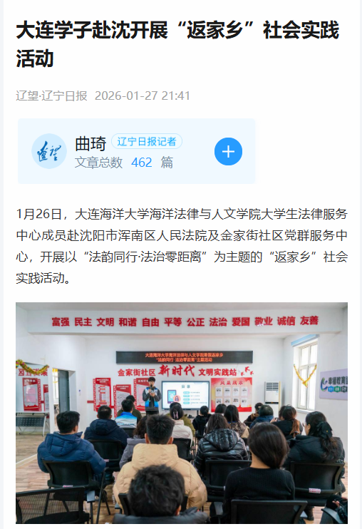 近日,辽宁日报、北斗融媒、民主与法制等媒体对我院开展的“返家乡”社会实践活动进行了专题报道。
