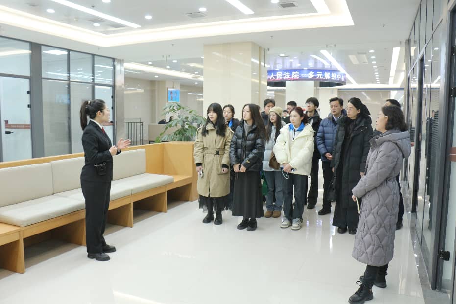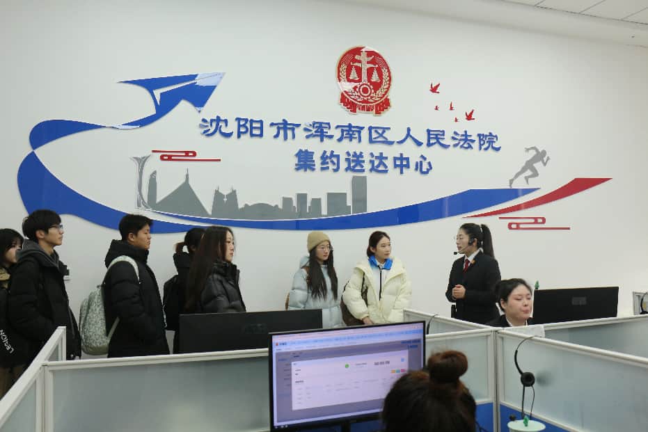 师生团队首站来到浑南区人民法院进行实践研学。区法院党组书记、院长王文艳,分管日常工作的副院长李冬梅带领师生重点参观了诉讼服务中心。同学们亲身体验了智能化立案流程、一站式多元解纷机制及便民利民服务设施。在座谈交流中,法院青年法官助理与同学们围绕职业规划、法律实务等话题展开了深入交流。通过实地参观与现场互动,同学们对基层法院的日常工作与智慧法院建设成效有了直观认识,进一步理解了“司法为民”宗旨的时代内涵与实践路径。