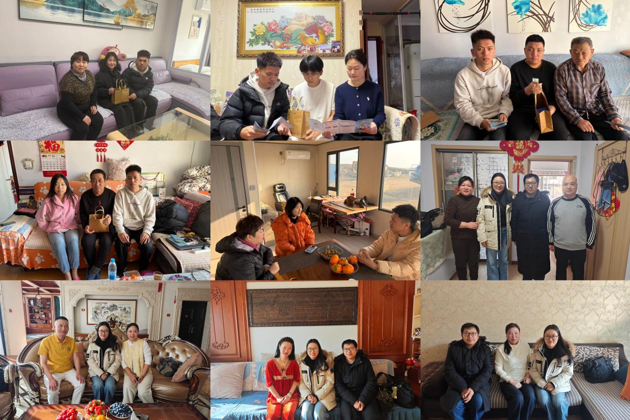 为深入贯彻落实立德树人根本任务,持续凝聚家校协同育人合力,1月4日至25日,我院党委书记高雪梅、院长王黎黎、党委副书记邓云清、纪委书记张仕春带队,组织全体辅导员赴辽宁省沈阳市、朝阳市、本溪市等地,深入26名学生家庭集中开展寒假家访工作,学校心理健康教育中心教师刘学一同参与。
