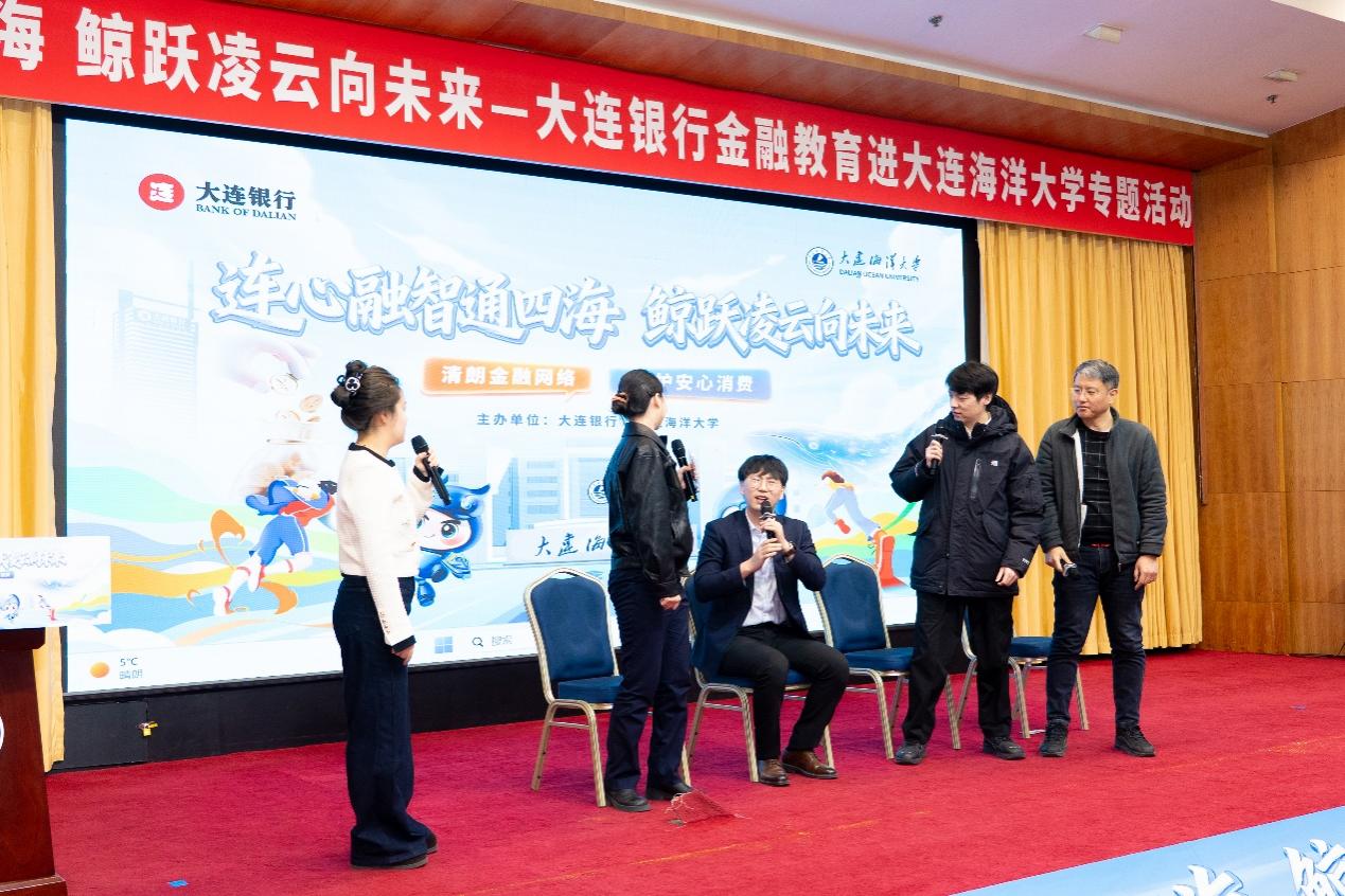 为宣传金融知识,提升反诈意识,筑牢风险防线,3月11日,我校联合大连银行举办“连心融智通四海 鲸跃凌云向未来”金融教育进校园专题活动,活动由我院承办。大连银行党委副书记、工会主席邓文超,消费者权益保护部总经理王海龙,营业部党委书记、总经理姜金磊,我校党委副书记李智军,大连市公安局反诈中心、黑石礁派出所等有关领导和人员出席活动,研究生与学科建设处处长李克辉、保卫处处长冯义显,我院党委书记高雪梅、院长王黎黎、副院长曲亚囡、纪委书记张仕春及研究生300余人参加。